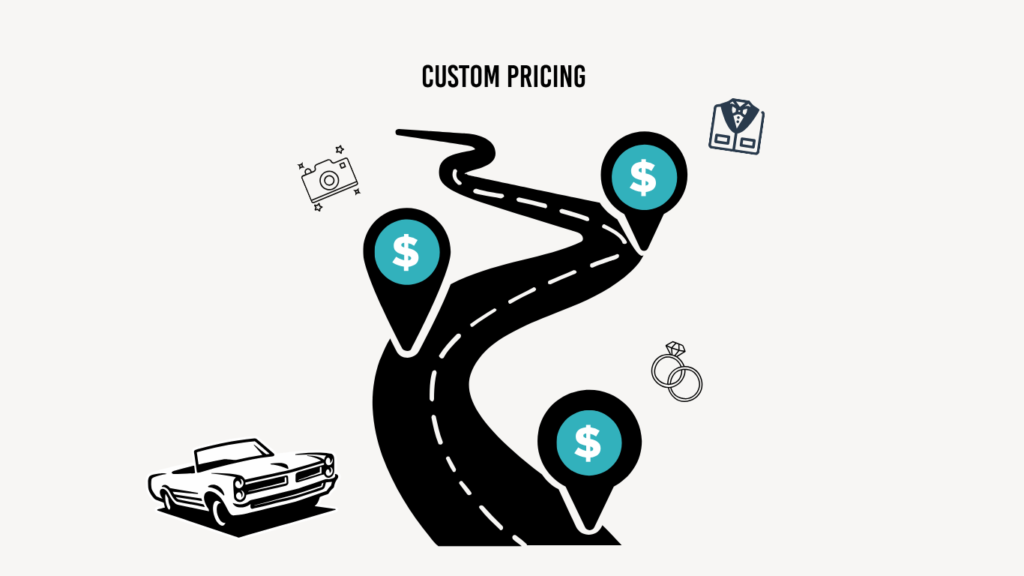 But what if a customer wants to book your vehicle for a wedding 80km away, or a half-day photoshoot in another region? That’s where custom pricing becomes your best tool.