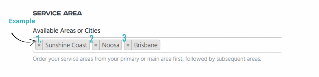 This is important because customers often search by location, and the first area you list will have the strongest visibility in search results. Getting this order right can make it easier for the right customers to find you — and help you convert more enquiries into confirmed bookings