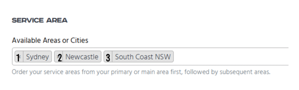 This is important because customers often search by location, and the first area you list will have the strongest visibility in search results. Getting this order right can make it easier for the right customers to find you — and help you convert more enquiries into confirmed bookings.