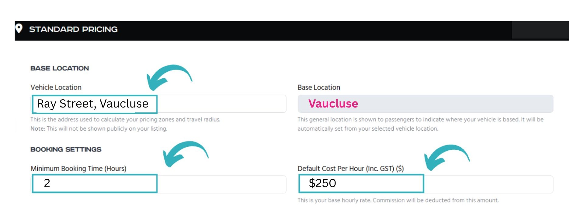 Standard pricing is the most straightforward way to charge for your vehicle. You set one base hourly rate and a minimum booking time for all events within your nominated service area.