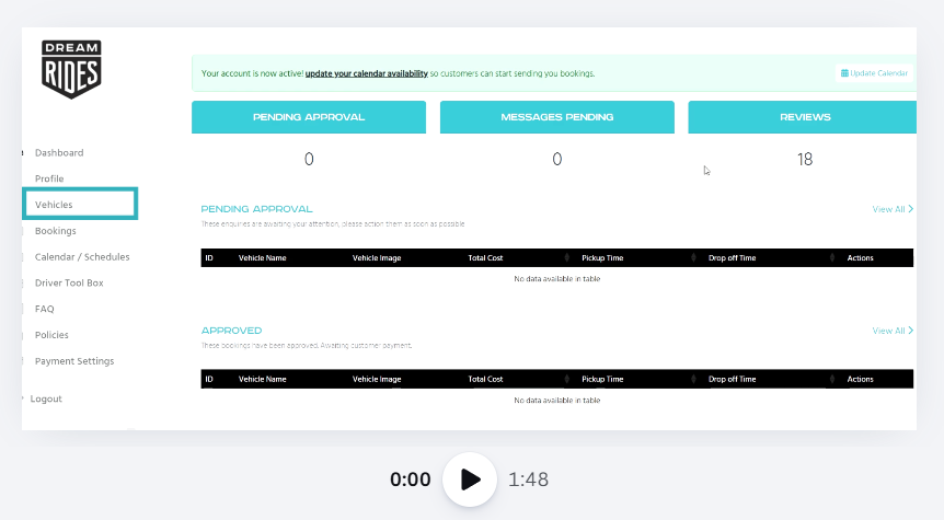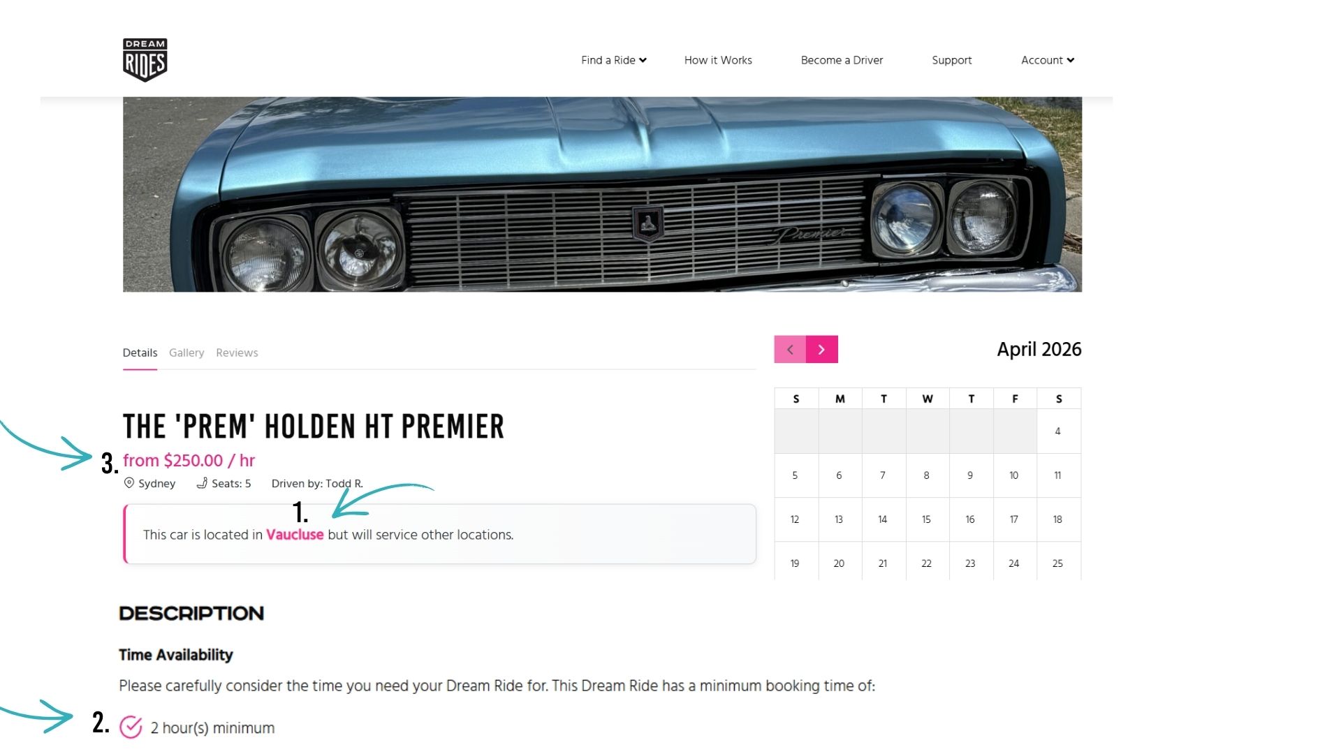 Customers browsing your ride will see this base rate on your vehicle listing, which helps them gauge affordability before they make an enquiry. It’s clear, simple, and easy to manage — especially if you’re just starting out.